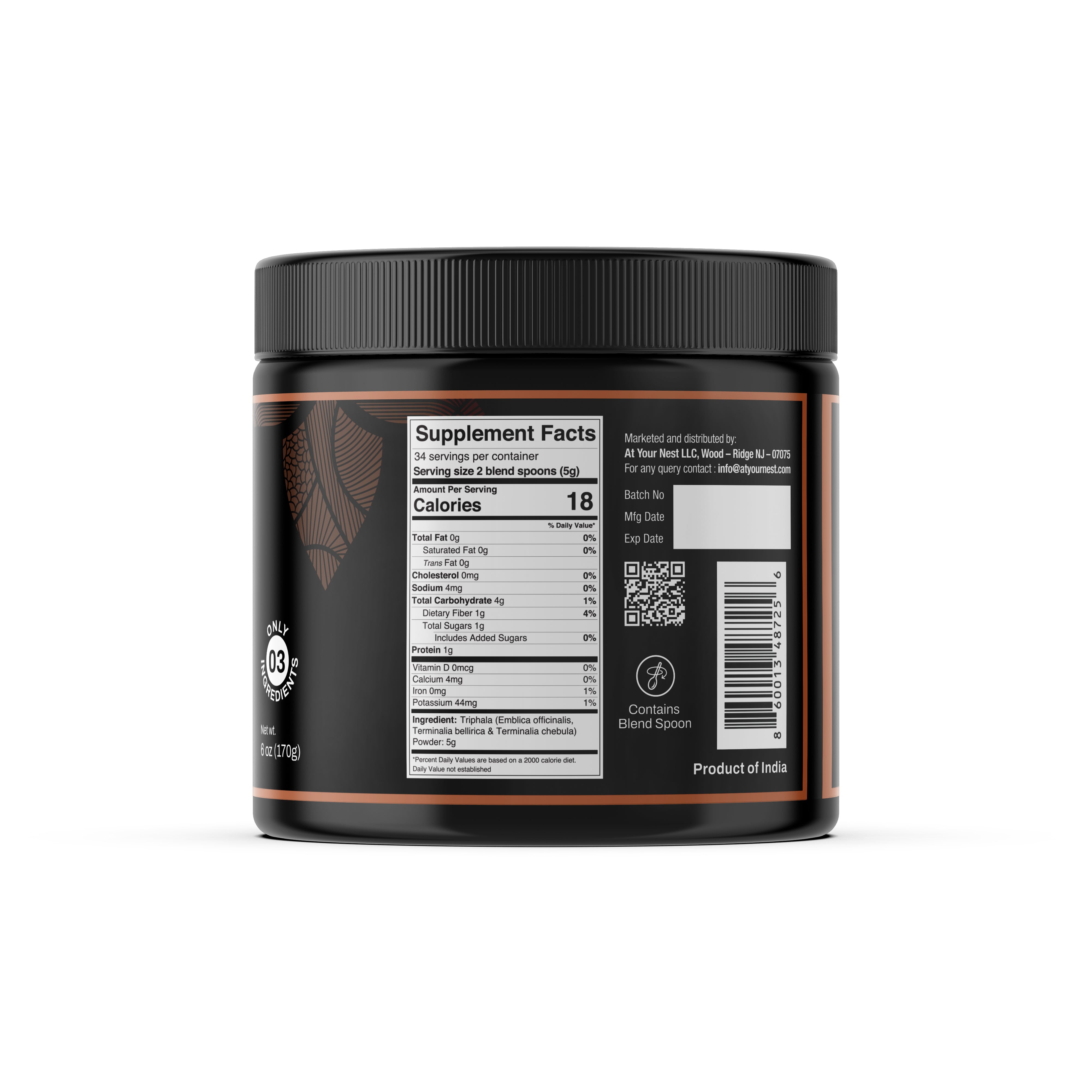 Nutrient Profile: Triphala, a herbal remedy (or polyherbal medicine) is a mixture of three dried fruits. In fact, Triphala literally means “three fruits” in Sanskrit. They are:Amala (Emblica officinalis), also called Indian gooseberry; Bibhitaki (Terminalia bellirica); Haritaki (Terminalia chebula)